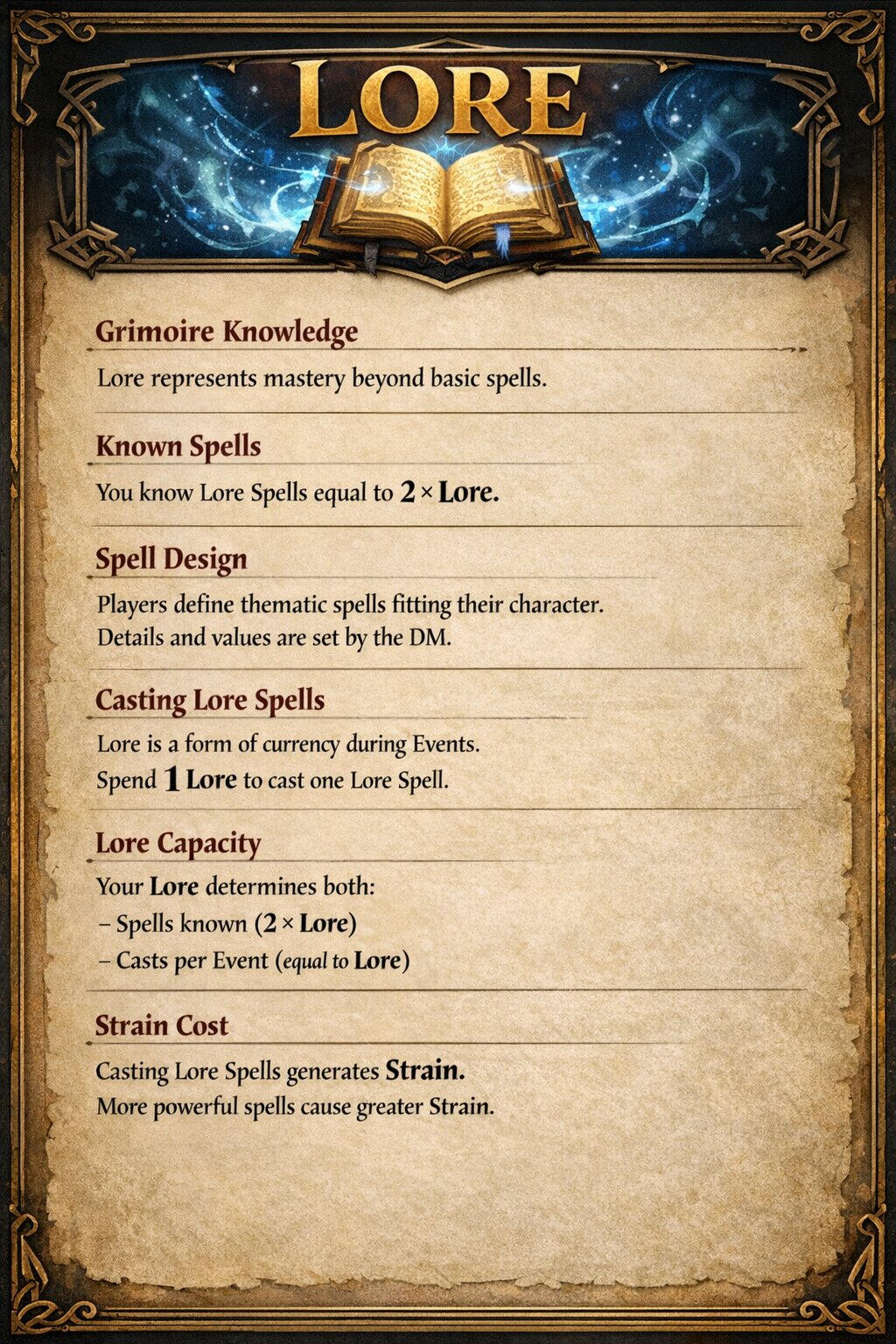 This system is a Dungeon Master–guided narrative game where characters interact with the world of Azeroth through roleplay and dice rolls.The Dungeon Master (DM) describes the environment, situations, and unfolding events. Players then declare what their characters attempt to do. When the outcome of an action is uncertain, the DM may call for a dice roll to determine success or failure.A character’s skills, attributes, and proficiencies can modify these rolls, representing what that character is naturally better—or worse—at doing.The goal of the system is not simply to win rolls, but to tell a shared story, where character decisions, risks, and actions shape the outcome of events and may influence future adventures.
