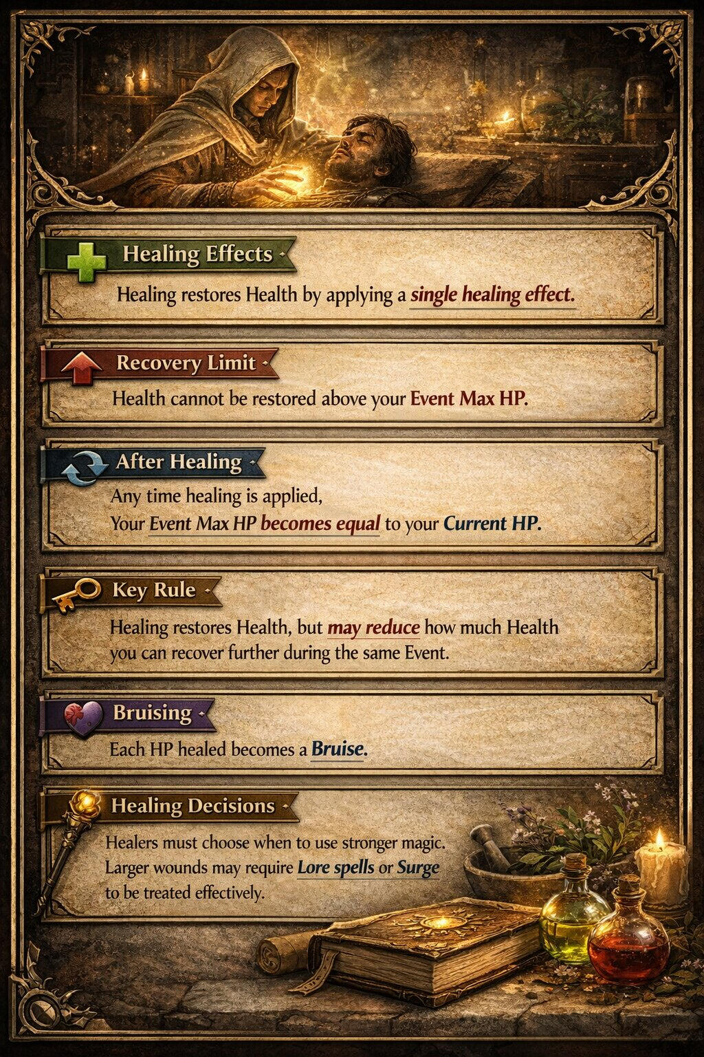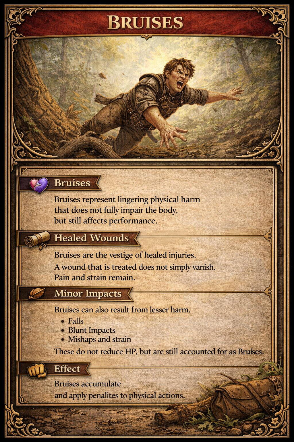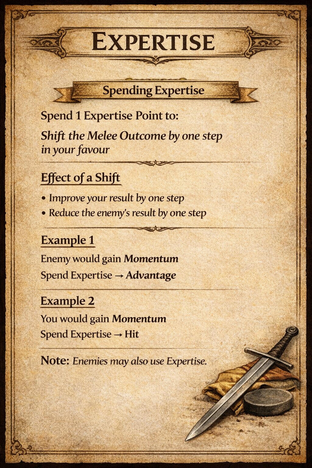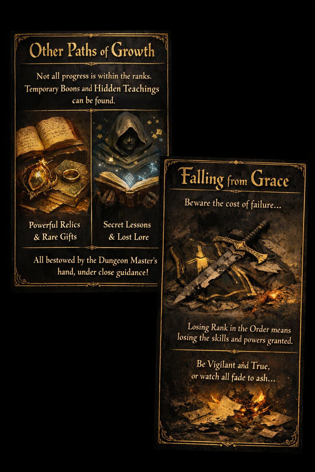 The DM system provides structure to these stories. It exists to determine the consequences of your character’s actions. When uncertainty arises—whether a blade strikes true, whether a cliff is climbed, whether a spell is resisted—the dice and your character’s statistics determine the outcome.