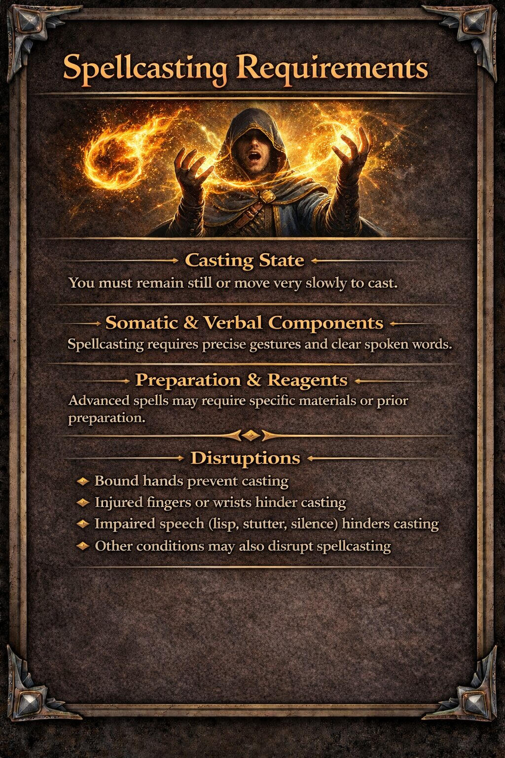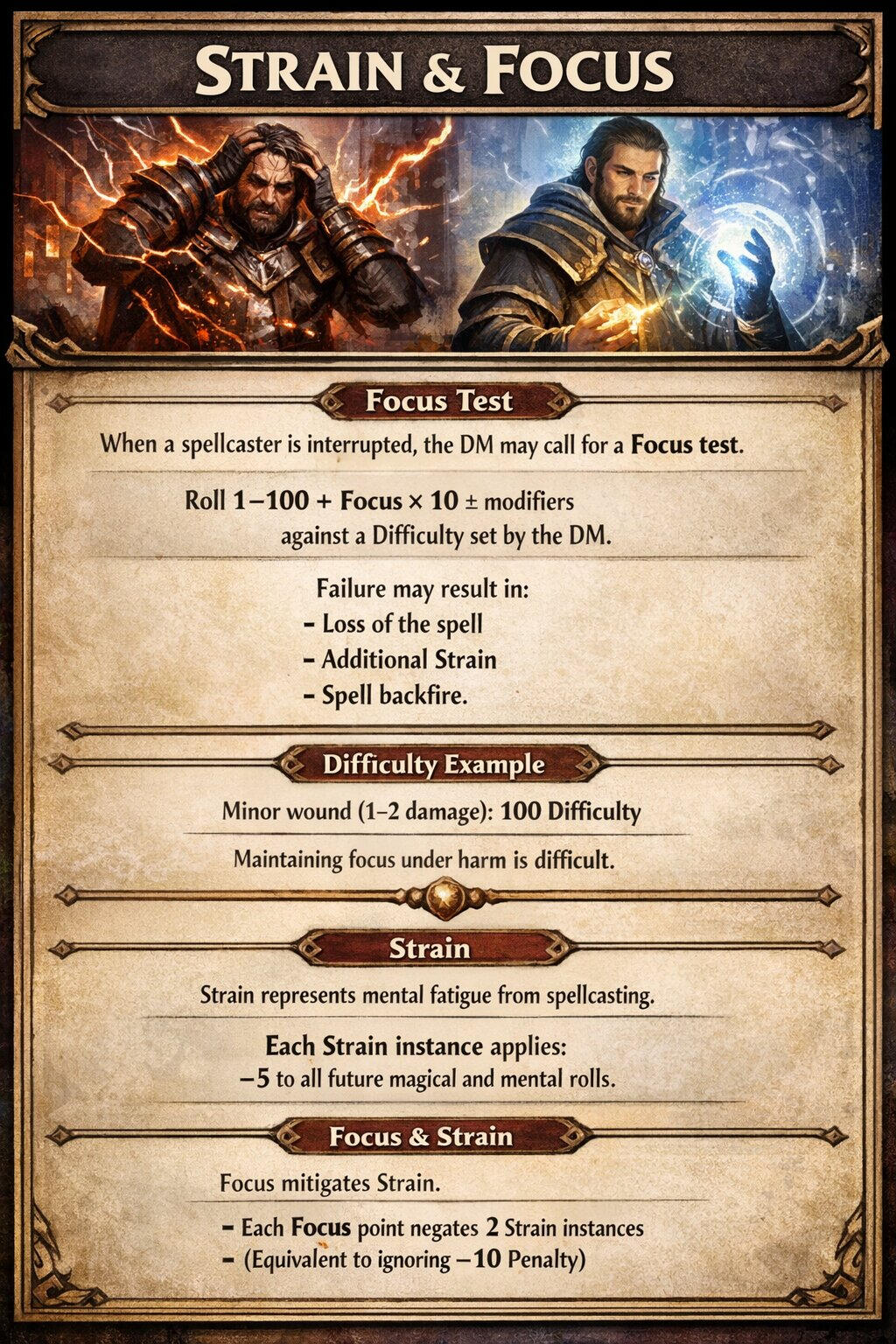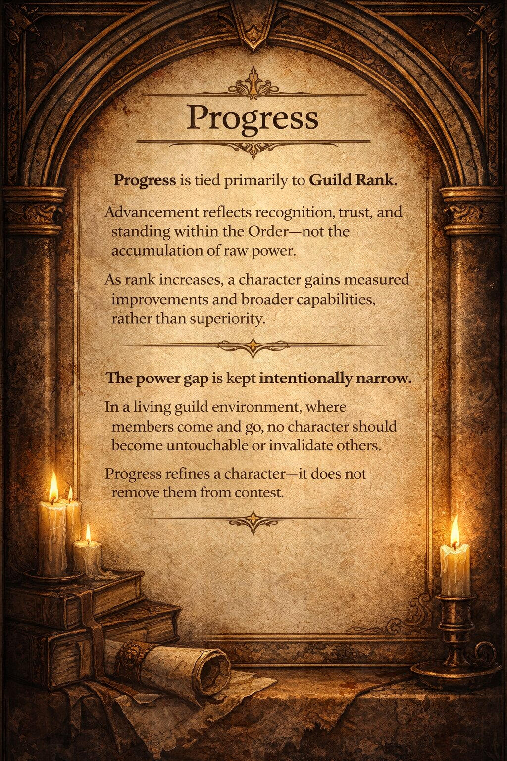 A mage may swing a blade—but not with the skill of a veteran knight.Characters are not Archmages, Highlords, or world-saving champions.